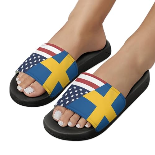 U.S. Sweden Flag House Sandals Non-Slip Bathroom Slippers Beach Summer Shoes for Men Women 7