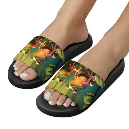 Frogs Standing on A Leaf House Sandals Non-Slip Bathroom Slippers Beach Summer Shoes for Men Women 6