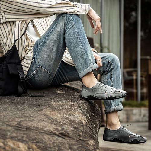 Men's Lace Up Handmade Fashion Sport Sandals, Closed Toe Casual Summer Fisherman's Shoes, Weave Soft Beach Shoes(Gray,6) 7