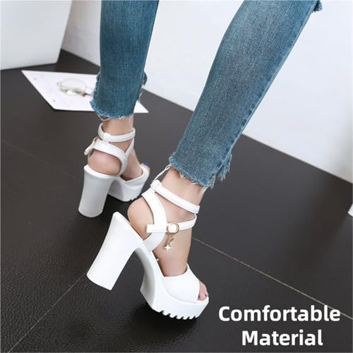 Women's High Heel Sandals Platform Sandals With Ankle Strap Open Toe Chunky Heels For Dress Wedding Party 7