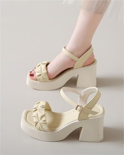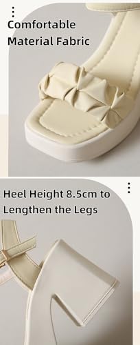 Women's High Heels Square Open Toe Strappy High Block Heeled Sandals Ankle Strap Buckle For Party Prom Wedding Dress 6