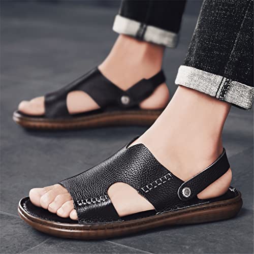 Leather Non-Slip Sandals Men's Soft Bottom Slippers Dual-Purpose Sandals Men Platform Sandals(White-Patch Five-Pointed star4,44 Code) 5