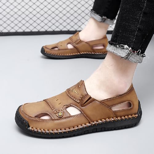 Asifn Mens Leather Sandals Lightweight Comfortable Fisherman Shoes Summer Outdoor Beach Hiking Casual Sports 6