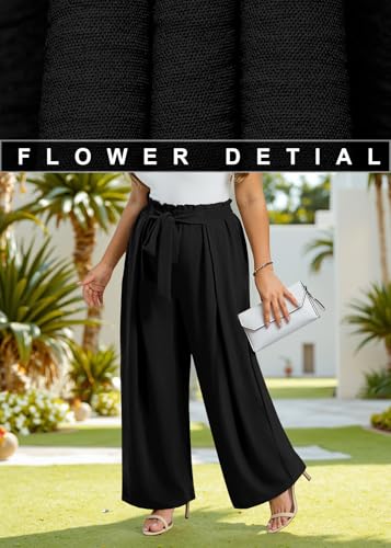 Lastshe Women's Plus Size Pants Wide Leg Work Casual Palazzo Pants Elastic High Waisted Dressy Trousers with Pockets 1