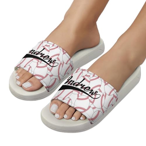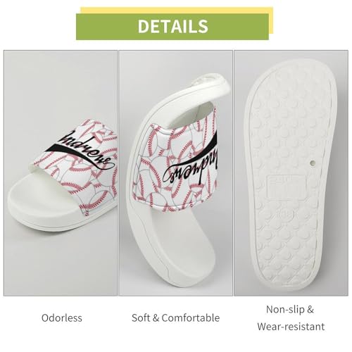Custom Sports Slides Personalized Slippers - Baseball Sandals Quick Drying Softball Slippers Indoor Outdoor,Gifts for Men Youth Boy (White,Style 32) 6
