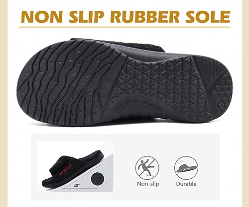 • ▶▶Adjustable & Comfortable: Mens fluff slippers are breathable and easy to slip on and off. Adjustable hoop & loop straps can be adjusted according to the width of your feet which effectively solves the problem of people with wide feet, diabetics, bunions, have foot surgery.