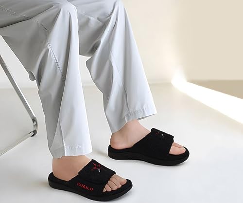 HOT ! KuaiLu Mens House Slippers Adjustable Soft Cushion Fur Sandals with Arch Support Comfort Open Toe Slides Slipper Slip-on Indoor Outdoor