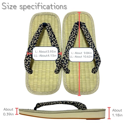• These geta sandals can be worn casually, just like sandals. The soles are cushioned, so you won't get tired even if you wear them for a long time. Recommended sizes: L 24.5cm - 26cm(9.64~10.23in) LL 26.5cm - 27.5cm(10.43~10.82in)