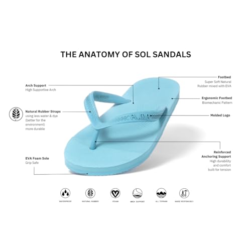 • Experience timeless design with a modern twist in Alma's classic thong sandal redesign. Crafted from a mix of natural rubber and soles made from Grip Safe EVA foam, these flip flops offer arch support and 100% waterproof protection