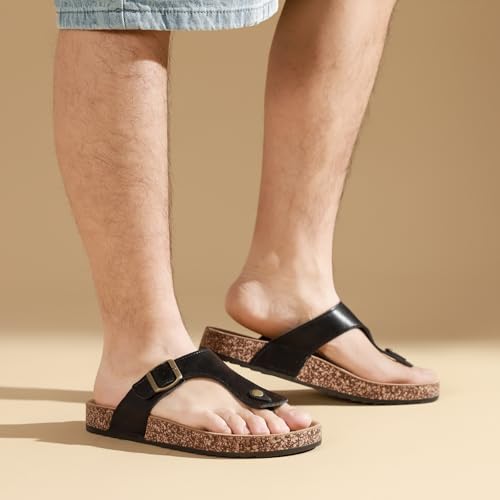 Leather Thong Cork Sandals for Men & Women, Water-Resistant Flip Flops with Cork Footbed & Memory Foam, Comfortable Summer Slides 5