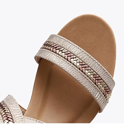 Sandals Slope Heeled Sandals Women's Summer Open Toe Sandals Back Zipper Large Women's Shoes Sandal(A,37) 5