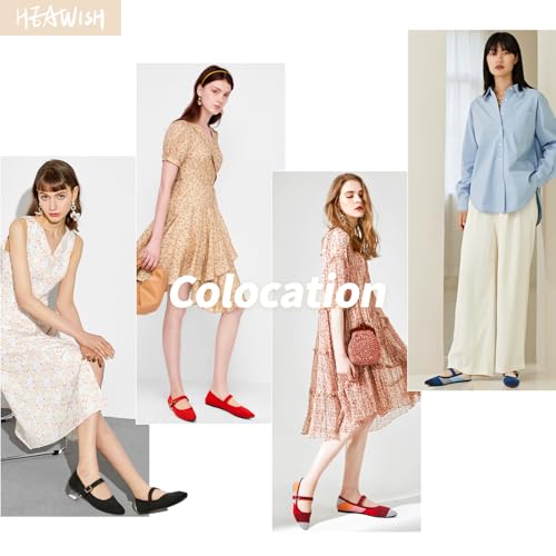 More information about HEAWISH Women's Ballet Flat Shoes Mary Jane Pointed Toe Mesh Flats,Comfortable Slip on Ladies Shoe with Adjustable Strap,Casual Office Dress Flats for Work