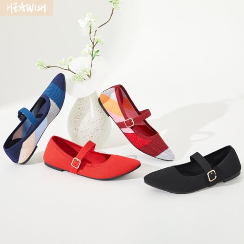 HOT ! HEAWISH Women's Ballet Flat Shoes Mary Jane Pointed Toe Mesh Flats,Comfortable Slip on Ladies Shoe with Adjustable Strap,Casual Office Dress Flats for Work