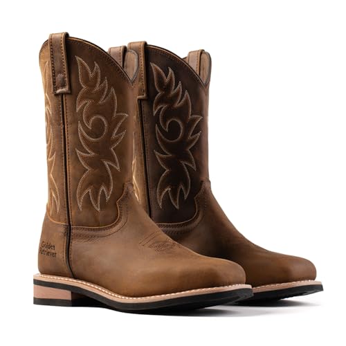 • 【Versatile Western Boots for Work & Play】Slip-resistant outsole gives reliable traction in muddy or slick terrain, making these leather cowboy work boots perfect for farming, riding, or weekend outings.