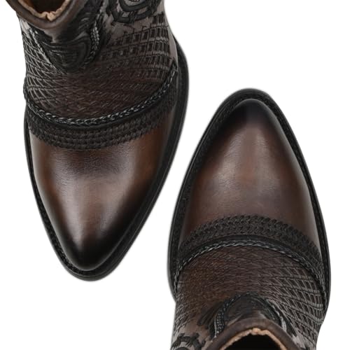 Cuadra Women's Western Ankle Booties, Brown Leather, Embroidered Design, 3.2-inch Heel 5