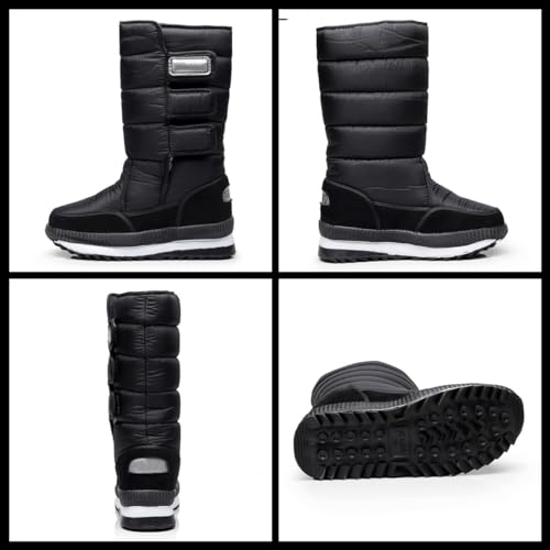 Men's Winter Snow Boots Waterproof Lightweight Warm Fashion Mid Calf Boot (black, Adult, Men, 9, Numeric, US Footwear Size System, Wide) 4