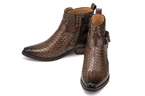 More information about CALTO Men's Invisible Height Increasing Elevator Shoes - Coffee Brown Premium Leather Woven Ankle Buckle Zipper Boots - 3.3 Inches Taller - K30525 - Size 7.5 D(M) US
