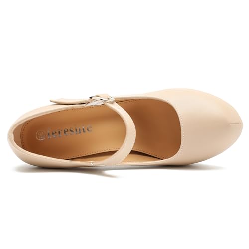 Women's Mary Jane Platform High Chunky Heels Closed Toe Ankle Strap Pumps Round Toe Comfortable Dress Shoes 4