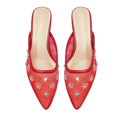 • Elegant Design: These kitten heel mules feature a crystal flower decor mesh, adding a touch of sophistication to your casual wear
