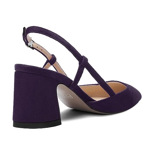 ROSERWISH Womens Slingback Pointed Toe Comfortable Dress Suede Wedding Buckle Block Mid Heel Pumps Shoes 2.5 Inch 5
