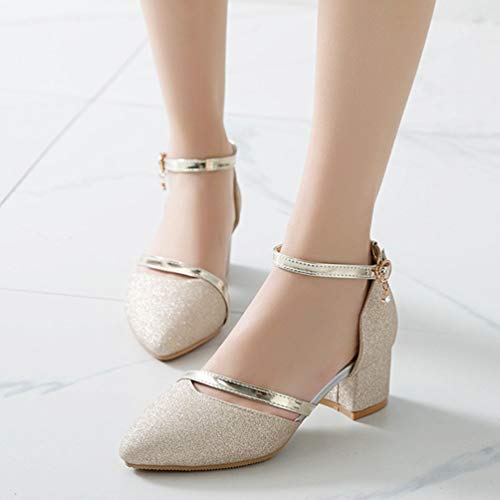 Caradise Womens Pointed Toe Glitter Chunky Heels Ankle Strap Pump Wedding Bridal Shoes 5