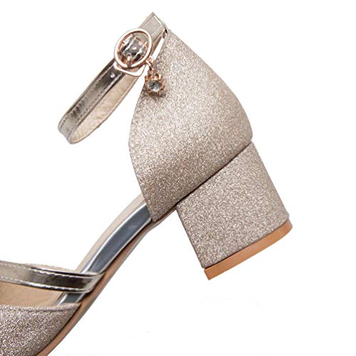 Caradise Womens Pointed Toe Glitter Chunky Heels Ankle Strap Pump Wedding Bridal Shoes 6