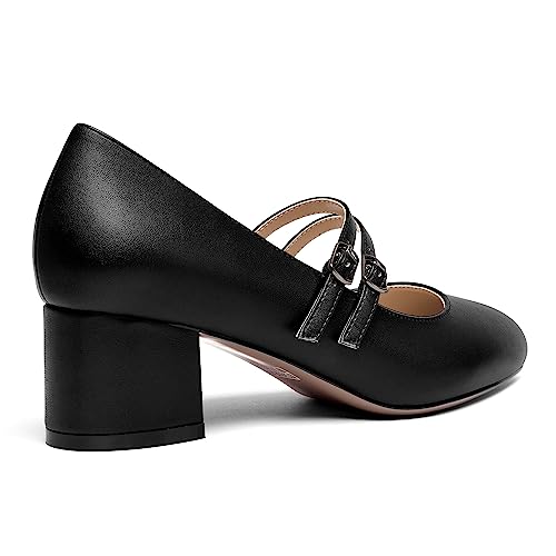 SHOWFOREST Womens Mary Jane Dating Solid Matte Adjustable Strap Round Toe Cute Slip On Block Low Heel Pumps Shoes 2 Inch 5