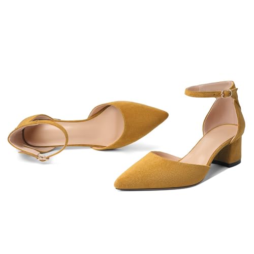 • 👠 Comfortable Block Heel: These women's block heels with pointed toe design and decorated with ankle strap decoration and smooth lines gives you a elegant temperament. These low heel shoes make you feel comfortable and you won't feel tired after wearing them for several hours. These women ankle strap heels are lightweight and comfortable.