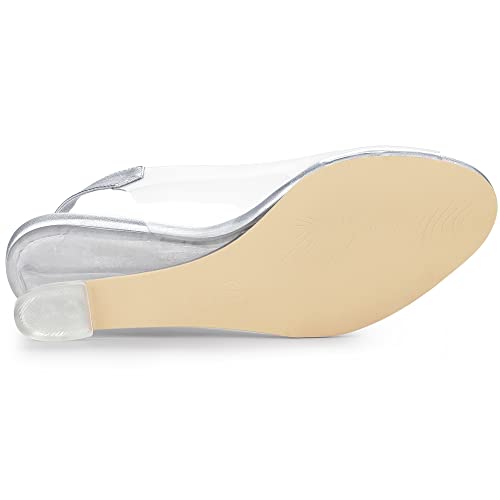 • Silver Slingback Shoes for Women, Girls Clear Dress Shoes, Open Toe Heels Pumps