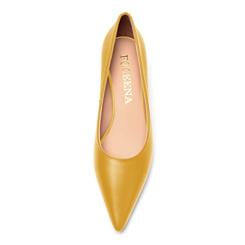 FOGEENA Womens Dating Matte Leather Comfortable Slip On Pointed Toe Casual Kitten Low Heel Pumps Dressy Shoes 1.5 Inch 5