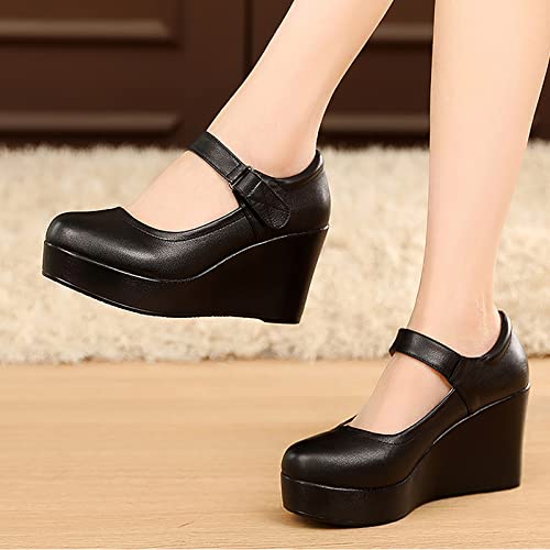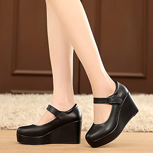 ANUFER Women's High Platform Wedge Heel Mary Jane Shoes Hook&Loop Ankle Strap Leather Pumps 5