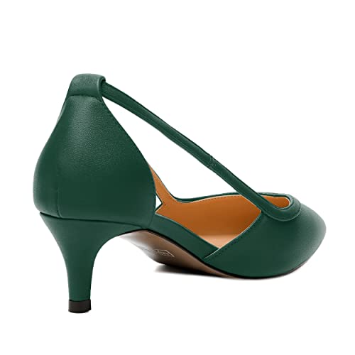 NUMALEO Womens Matte Office Adjustable Strap Solid Casual Pointed Toe Buckle Kitten Low Heel Pumps Shoes 2 Inch 5