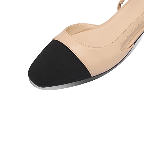 Adrizzlein Womens Slingback Heeled Pumps Closed Round Toe Block Heels Two Toned Casual Chunky Heels Office Shoes Nude Flat Size 6 5