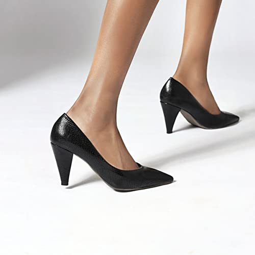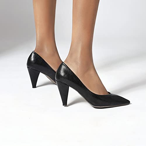 • 💕【Features & Style】These slip-on pumps are featured with a pointed toe and a cone heel for a classic and vintage silhouette, patterned with snakeskin animal printing leather provides this simple style a unique and sophisticated feel.