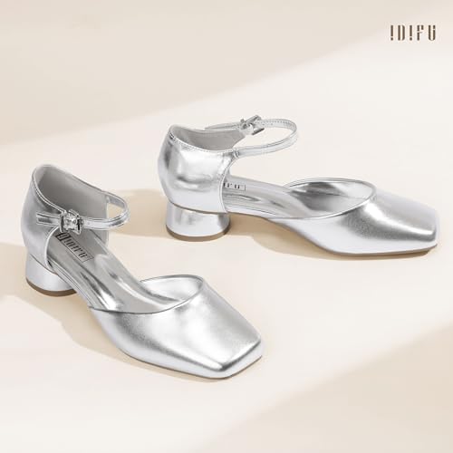 HOT ! IDIFU Closed Toe Heels for Women Square Toe Low Block Chunky Heeled Pumps with Ankle Strap Buckle for Bride Wedding Comfortable Dressy Short Small Women's Dress Shoes Thick Heels