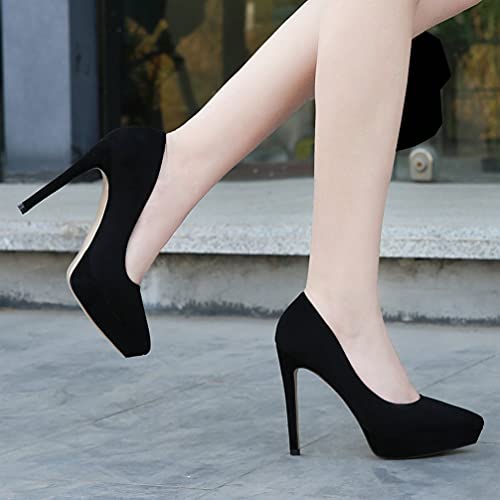 KOKOMOMO Womens Faux Suede Pointed Toe Platform Stiletto High Heel Pumps 6