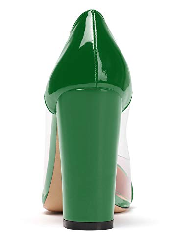 SAMMITOP Women's Chunky Heel Pumps Pointed Toe High Heel Transparent Dress Shoes 4