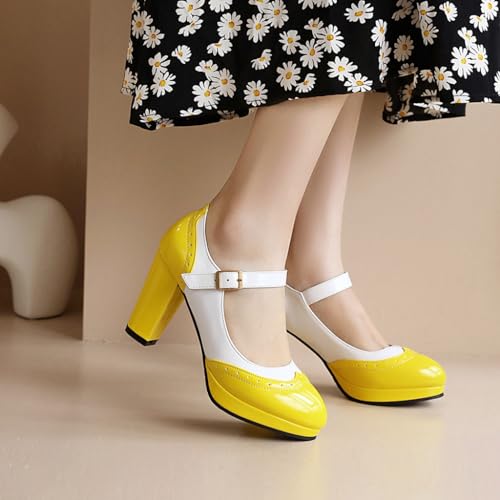 • ➤FINEST QUALITY & COMFORTABLE】: Womens Ladies Classic Mary Jane Pump Shoes, Simple Sleek Two Toned vamp;Buckle Strap Easy On/Off; Anti-slip Platform Lightweight, High Strength, Good Fexibility, Finished with Lightly Cushioned for All Day Comfy and Eco-Friendly Design. Instep ventilation pores for your comfort.