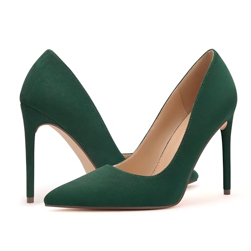 HOT ! Women's Pumps Slip On High Heels with Pointed Toe 4Inch Stiletto Bridal Party Dress Heels for Casual,Lucy-Green Su-8.5-O1