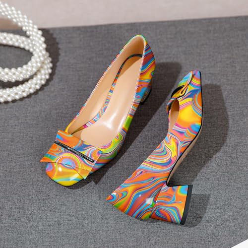 HOT ! Joseywade Block Chunky Heels for Women Closed Square Toe Low Heel Pump Slip On 2 Inches Comfortable Shoes for Party Prom Dress with Bow Patent Multicolor Heat US Size 7