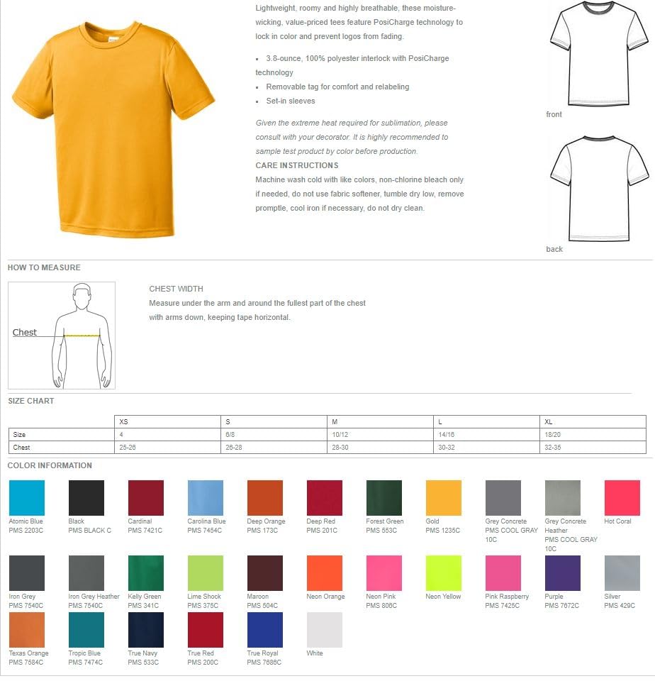 • 100% Polyester performance Youth tshirts