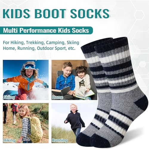 Kids Merino Wool Hiking Socks Toddlers Boys Girls Thermal Warm Winter Cushion Moisture Wicking Crew Boot Socks 6 Pairs 3