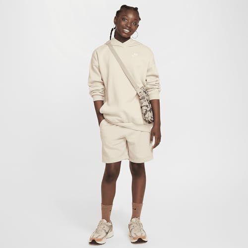 HOT ! Nike Sportswear Club Fleece Big Kids' Oversized Pullover Hoodie (FZ5579-126, Sanddrift/White)