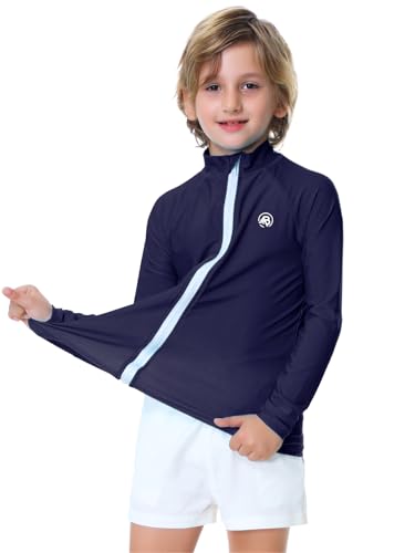 AOBUTE Unisex Kids Zipper Rash Guard Boys UPF 50+ UV Protection Sun Shirt with Thumb Hole 3-12 Years 7