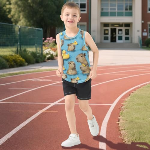 Boys Tank Top Shirts Funny Capybara Yellow Rubber Duck Sleeveless T-Shirts Crew Neck for Kids Clothing Children 5