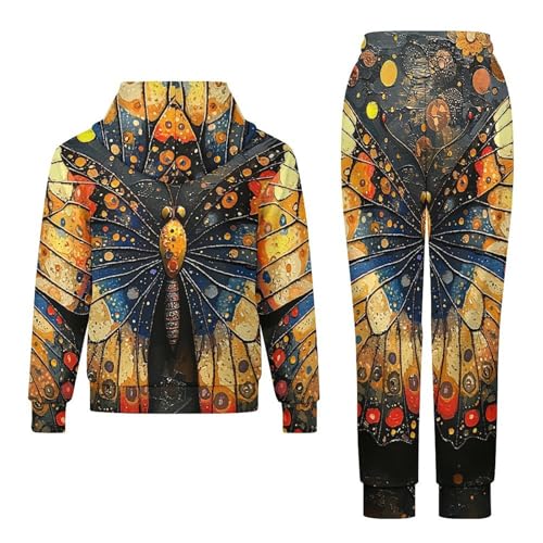 HOT ! Boy's Girl's Hooded Tracksuit Pullover Sweatshirt Jogging Pants Sweatsuit, Flying Butterfly Patterns Art