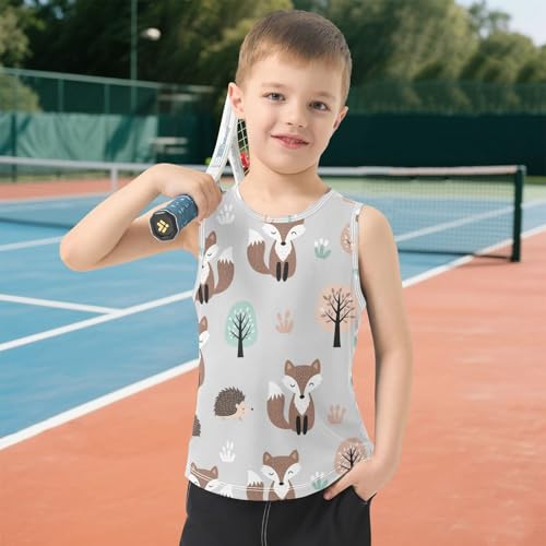 J JOYSAY Cartoon Deer Hedgehog Boys Tank Top Sleeveless Muscle Shirts Quick Dry Sport Active Workout Kids T-Shirts 3-15T 3