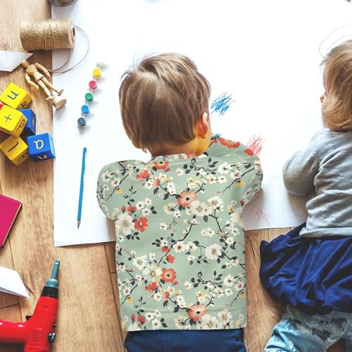 JUNZAN Vintage Colorful Flowers Green Kids Boys Sweatshirt Hoodie Fleece Boys Sweat Shirt Party 4T 1