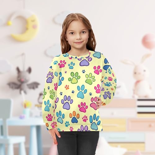 JUNZAN Colorful Dog Paw Yellow Big Girls Sweatshirts Hoodies Fleece Outerwear for Kids Camping 4T 1