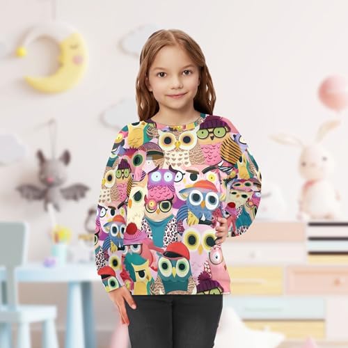JUNZAN Colorful Cute Cartoon Owls Kids Girls Sweatshirts Hoodies Long Sleeve Sweatshirt With Hoodie Athletic 4T 6